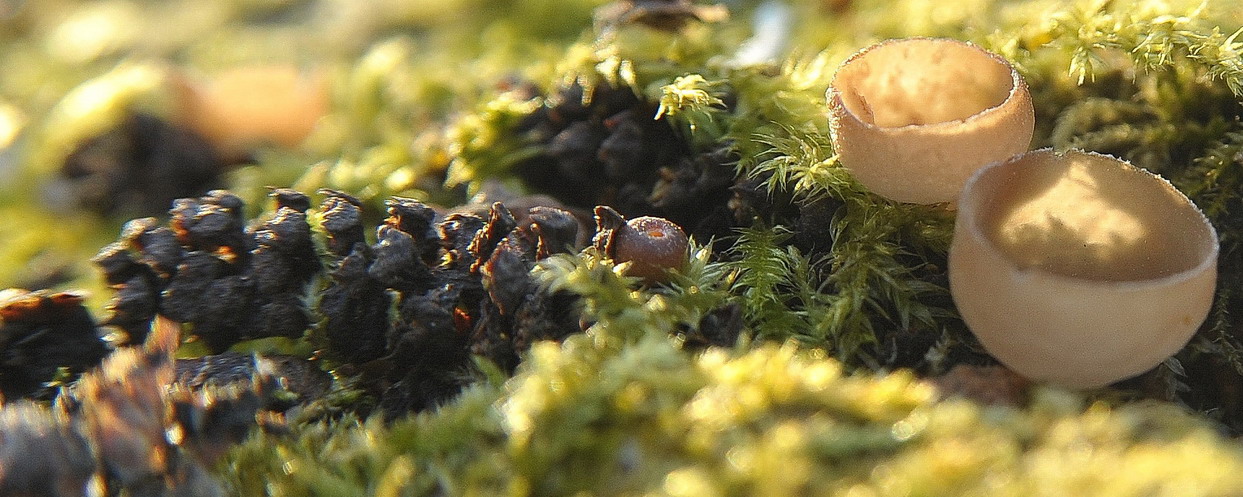 подмосковье, конец марта. Диаметр плодового тела гриба (рода Цибория) 6 мм. |