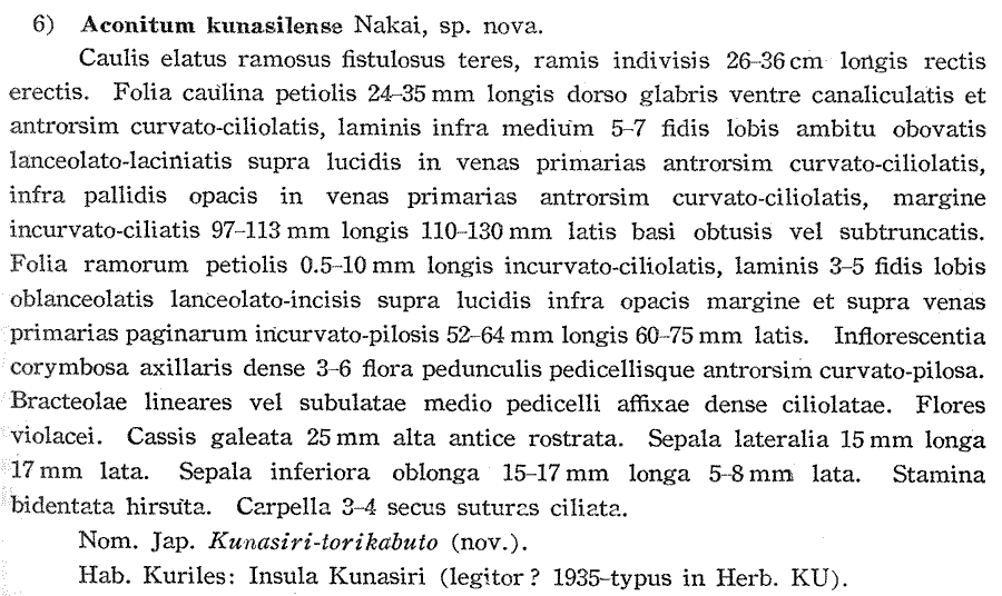 Протолог Aconitum kunasilense Nakai (Bulletin of the National Science Museum 32: 21. 1953):