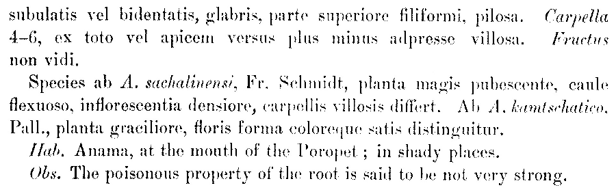 : "Shikotan Ins., Anama, at the mouth of the (River) Proret, in shady place, Sept. 2, 1910, M. Arai" (SAP). Протолог