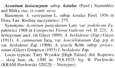 Aconitum lasiocarpum ssp. kotulae Справка |
