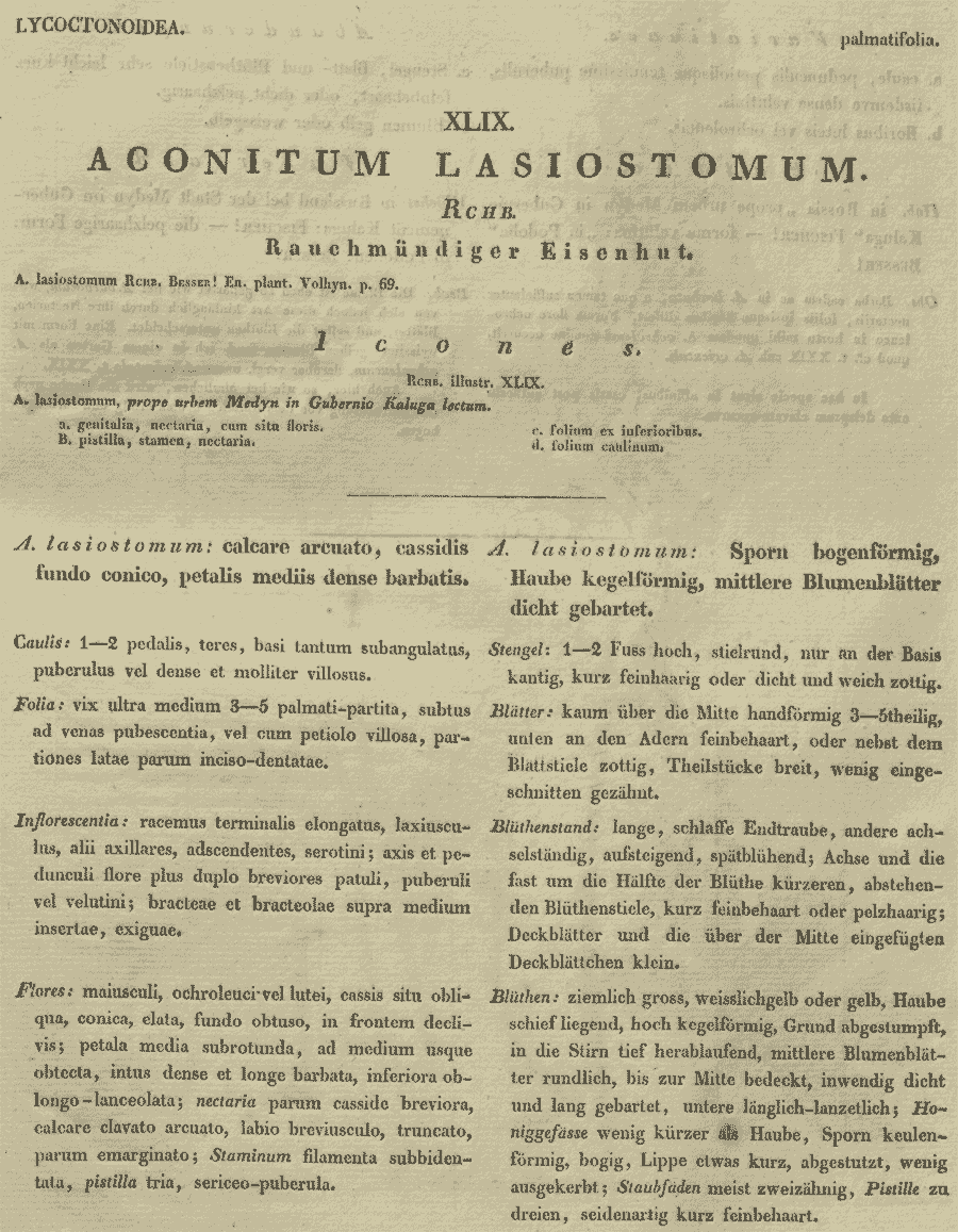 | Андрей Ковальчук | Описание и иллюстрация из работы "Illustratio Specierum Aconiti Generis": t. XLIX (1825):