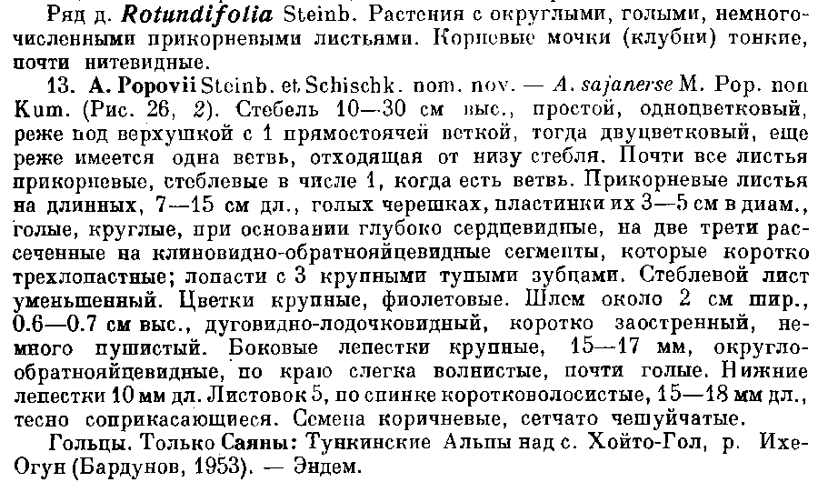 Описание Aconitum popovii Steinb. & Schischk., опубликованное без латинского диагноза (Флора Средней Сибири 1: 244. 1957):
