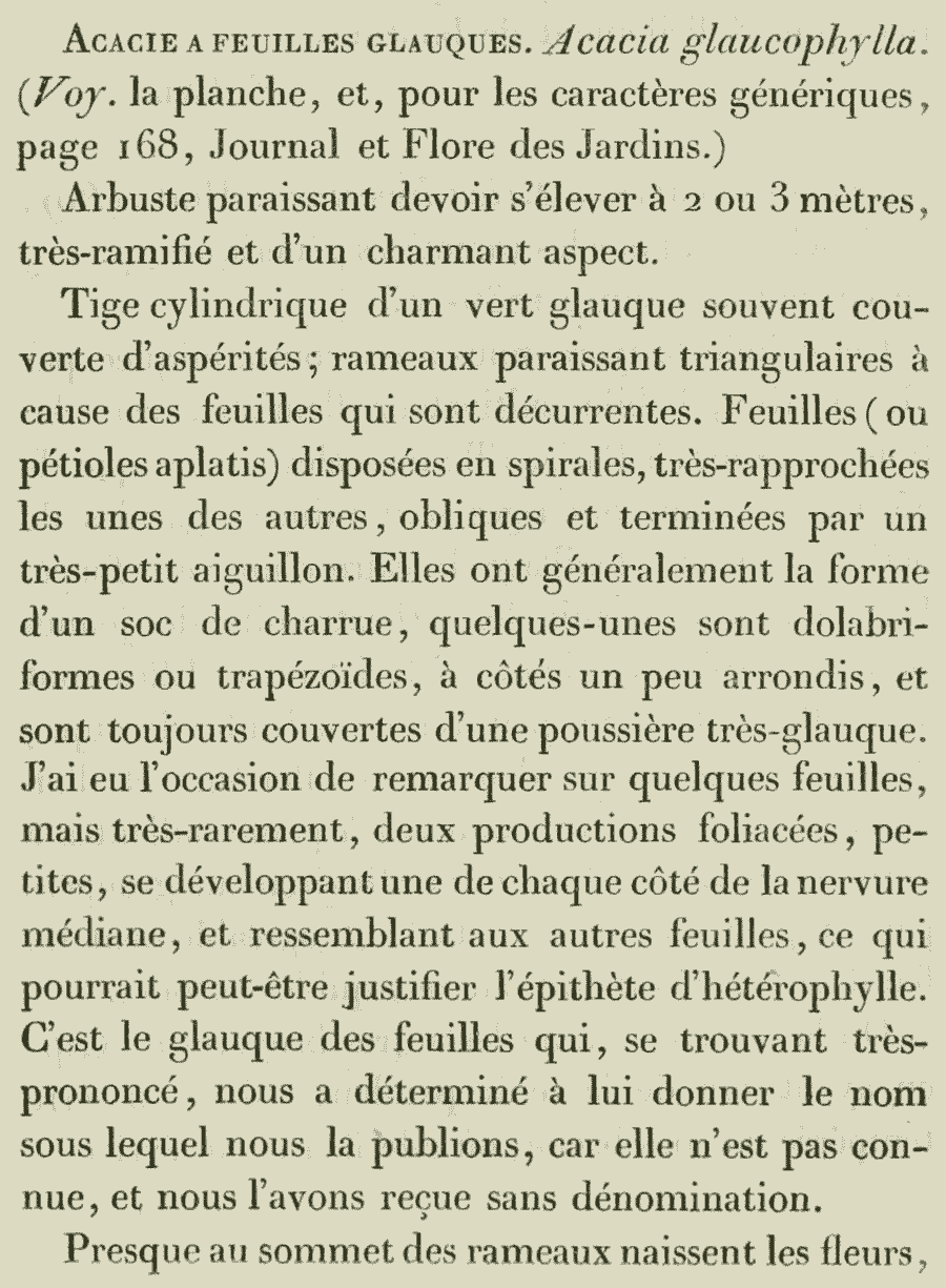 | Андрей Ковальчук | Протолог Acacia glaucophylla F. Cels. (Annales de flore et de pomone  u journal des jardins et des champs 1839-40: 93, Pl. 10. [Dec. 1839]):