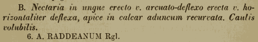 | Андрей Ковальчук | Описние A. raddeanum при обнародовании этого названия было очень кратким. В том же 1861 г. этот вид был упомянут Регелем в работе "Tentamen florae ussuriensis oder Versuch einer Flora des Ussuri-Gebietes" (с. 11), но также очень кратко: