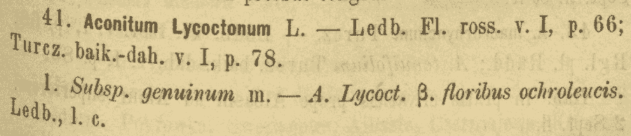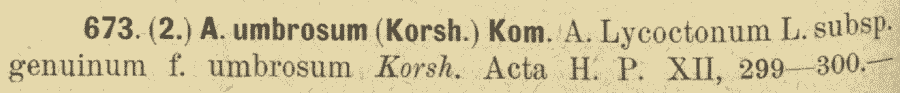 | Андрей Ковальчук | Протолог Aconitum lycoctonum subsp. genuinum f. umbrosum Korsh. (Acta Horti Petropolitani 12: 299(-300). 1892):