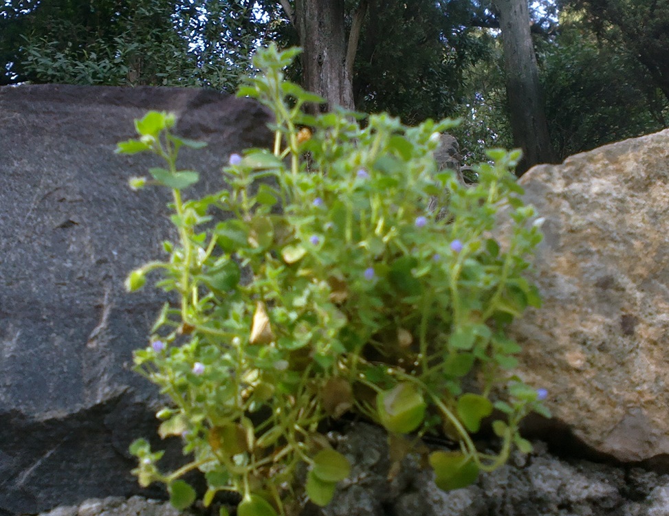 встречается везде в Крыму в траве и на стенах, как на этом фото из Воронцовского парка.. малюсенькие сиреневые или скорее голубоватые цветы по 3-4 мм (простите за качество фото)