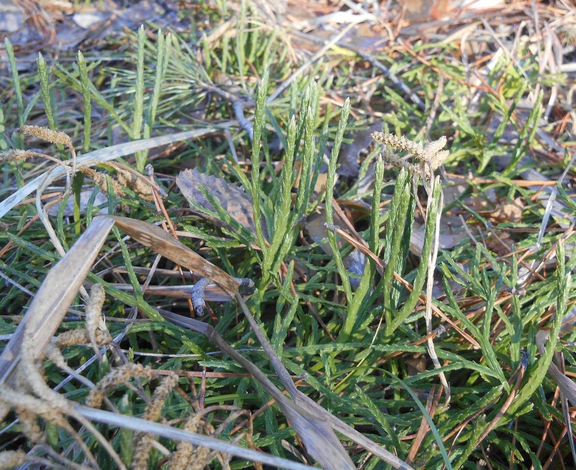 Встречается в Курганской области повсеместно в сосновых борах. Фото 25.04.2018 Видны прошлогодние перезимовавшие цветоносы(спорангии)