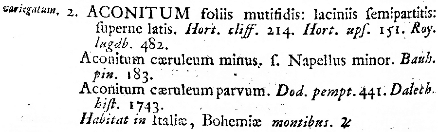 Протолог Aconitum variegatum L. (Species Plantarum 1: 532. 1753 [1 May 1753]):