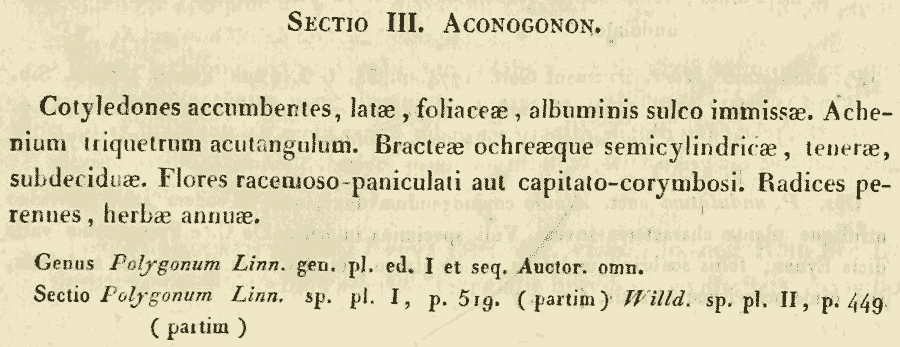 Обнародование родового названия Aconogonon (Meisn.) Rchb. (Handbuch des Naturlichen Pflanzensystems 236. 1837 [1-7 Oct 1837]):