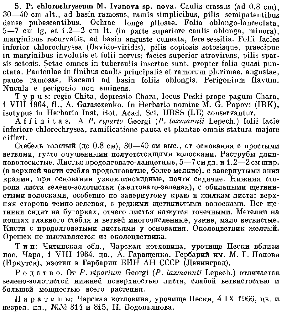 Протолог Polygonum chlorochryseum M.M. Ivanova (Ботанический журнал 65(2): 279. 1980):