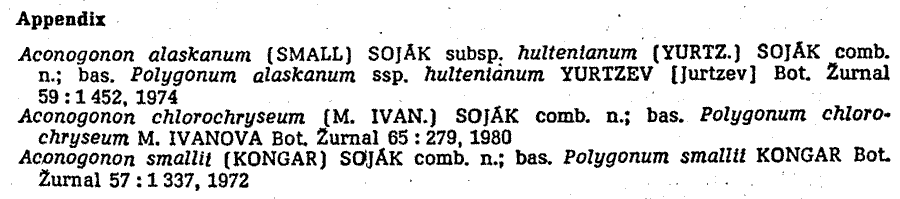 | Андрей Ковальчук | Обнародование комбинации Aconogonon chlorochryseum (M.M. Ivanova) Soják (Časopis Národního Muzea v Praze, Rada Přírodovědna 150(3-4): 137. 1982 [1981 publ. 1982]):