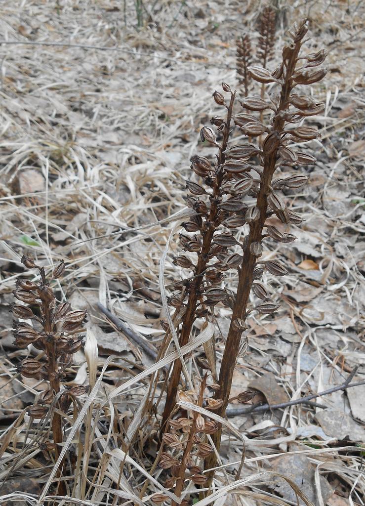 Остатки орхидного на сухой границе посадок сосны с березняком.