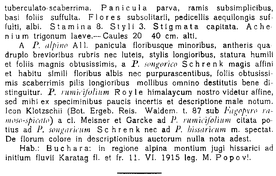 | Андрей Ковальчук | Протолог Polygonum hissaricum Popov (Ботанические материалы Гербария Главного Ботанического сада РСФСР / Notulae systematicae ex Herbario Horti Botanici Reipublicae Rossicae 5(3): 38(-39). 1924):
