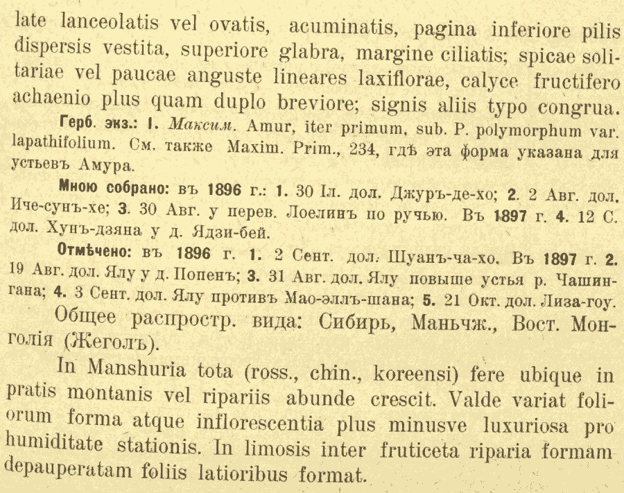 | Андрей Ковальчук | Протолог Polygonum divaricatum var. limosum Kom. (Acta Horti Petropolitani 22(1): 140. 1903):