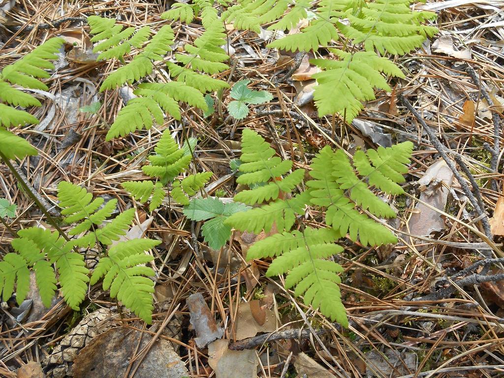 Встретил сегодня вот такой вот мелкий (шишка сосны попала в кадр, для сравнения) папоротник в сосняке. Курганская область. Похож на орляк, но какой-то очень-очень мелкий. Есть и другие ракурсы.