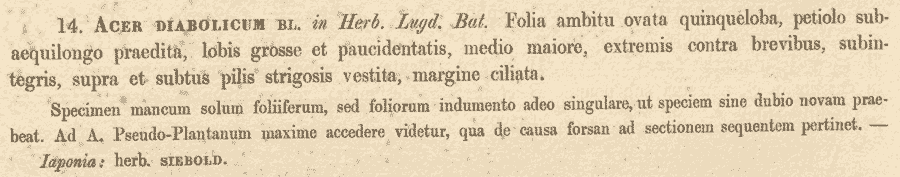 Протолог Acer diabolicum Blume ex K. Koch (Annales Musei Botanici Lugduno-Batavi 1: 251. 1864):