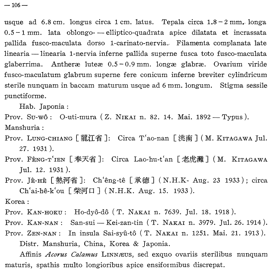 (Report of the first scientific expedition to Manchoukuo sect. IV, part IV. Index Florae Jeholensis: 105(-106). 1936 [Aug 1936]):