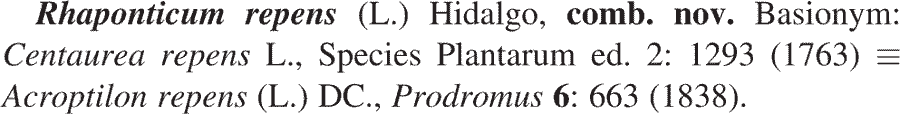 | Андрей Ковальчук | Обнародование комбинации Rhaponticum repens (L.) Hidalgo (Annals of Botany (Oxforf) 97(5): 714. 2006 [May 2006]):