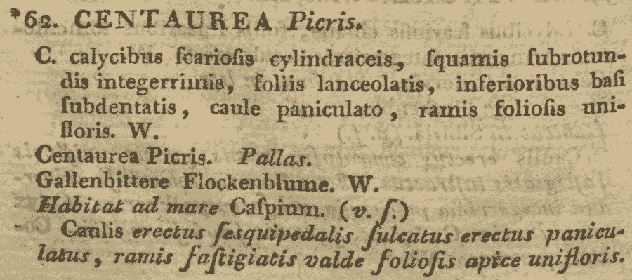 Протолог Centaurea picris Pall. ex Willd. (Species Plantarum ed. 4, 3(3): 2302. 1803 [Apr-Dec 1803]):