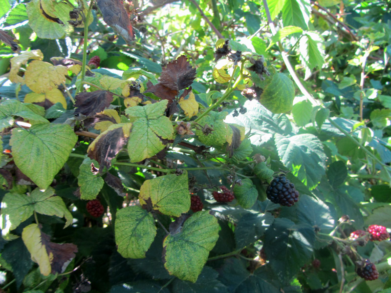 И ягоды на солнечных увлажненных местах не мельче чем у сортовой ежевики Агавам.  |