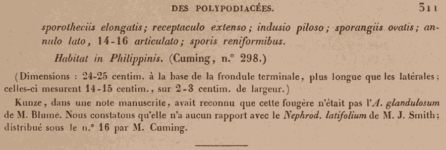 (Mémoires sur les Familles des Fougères; Cinquieme Mémoire, Genera Filicum 309(-311). 1852; тип: