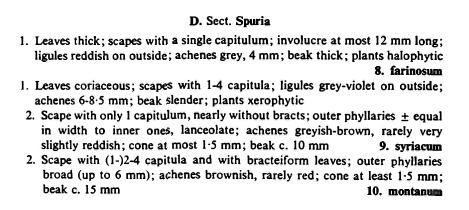| Андрей Ковальчук | Получил ответ - если коротко, то эти среднеазиатские одуванчики относятся к секции Sonchidium (так теперь называют секцию Spuria), но это не T. montanum (=T. sonchoideum). Возможно, к ним можно применить название T. turcomanicum, а, возможно, это еще неописанный вид. Ревизия этой секции в работе, так что есть надежда, что в скором времени что-то прояснится. |