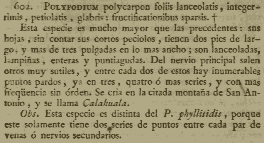 Протолог Polypodium polycarpon Cav. (Descripción de las Plantas 246. 1802):