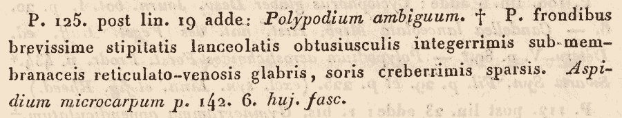 Протолог Polypodium ambiguum Blume, nom. illeg. (non P. ambiguum Desv., 1827) (Enumeratio Plantarum Javae et insularum adjacentium 2: Addenda et Emendanda, s.n. 1828):