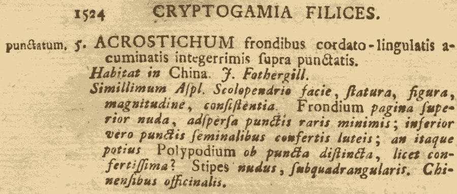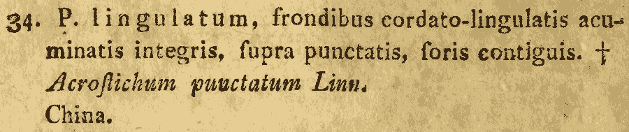 Протолог Polypodium polycarpon Sw. и обнародование комбинации Polypodium punctatum (L.) Sw., nom. illeg. (non P. punctatum Thunb., 1784) (Journal für die Botanik (Schrader) 1800 [2]. 21. 1801):