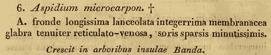 Протолог Aspidium microcarpon Blume (Enumeratio Plantarum Javae et insularum adjacentium 2: 142. 1828):