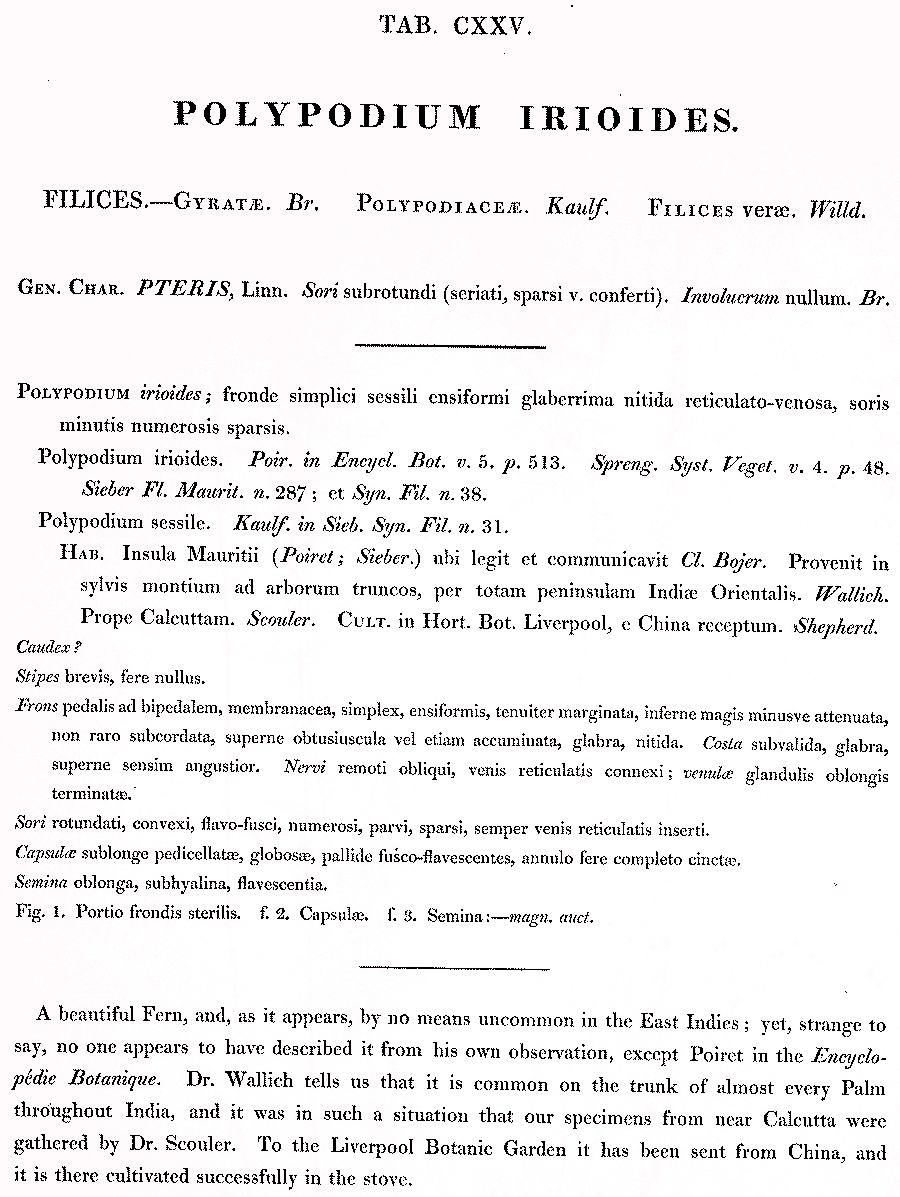 Протолог Polypodium irioides Poir. (Encyclopédie Méthodique, Botanique [J. Lamarck & al.] 5(1): 513–514. 1804 [9 Jan 1804]):