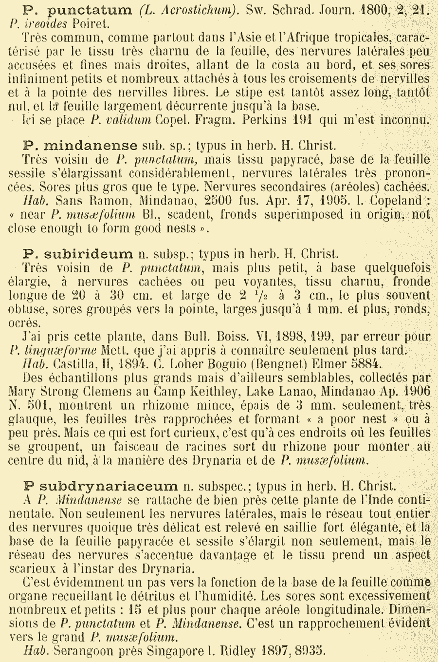 Протолог Polypodium punctatum ssp. subdrynariaceum Christ и Polypodium punctatum ssp. subirideum Christ (Bulletin de l'Herbier Boissier, sér. 2, 6(12): 994. 1906):