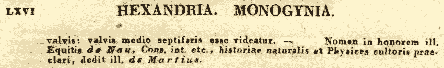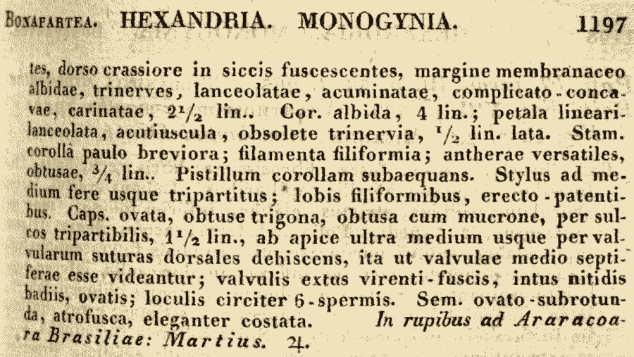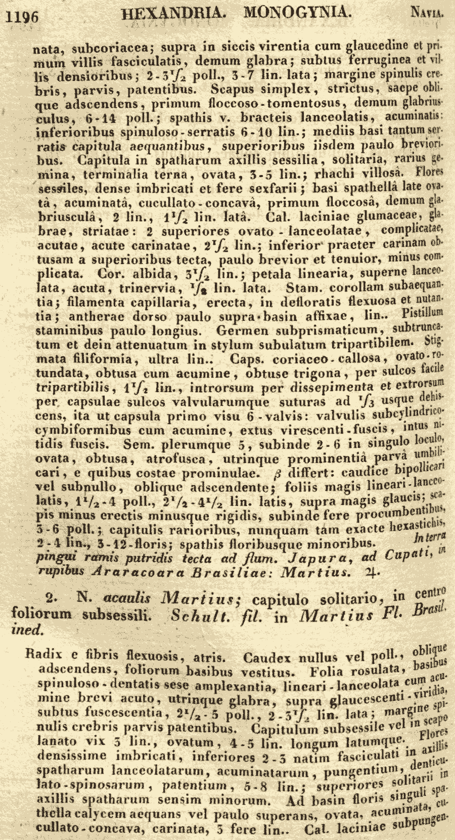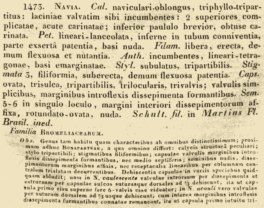 | Андрей Ковальчук | Протолог рода Navia Schult.f. (Systema Vegetabilium, ed. 15 bis [Roemer & Schultes] 7(2): lxv, 1195. 1830 [Oct-Dec 1830]; лектотип: Navia caulescens Mart. ex Schult. f., designated by L. B. Smith, ING card 00747 (1 Oct 1955  :