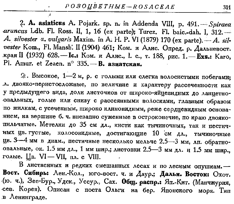 | Андрей Ковальчук | Протолог Aruncus asiaticus Pojark. (Флора СССР 9: 491-492, 311. 1939):