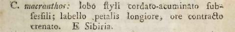 | Александр Фатерыга | С названием интересная ситуация. Тут Андрей выложил статью, в которой говорится, что первоначальное греческое написание прилагательных с окончаниями -os и -on следует сохранять (не менять на -us -a и -um) и при необходимости согласовывать в грамматическом роде при создании новых комбинаций (-os - мужской и женский род, -on - средний). Но в данном случае Cypripedium кажется среднего рода, а первоначальное написание - macranthos. Следует ли его менять на macranthon - вопрос. Кажется, что да, но я могу ошибаться.