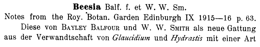 Протолог Beesia cordata Balf. f. & W.W. Sm. (Notes from the Royal Botanic Garden, Edinburgh 9: 63. 1915):