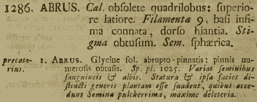 Протолог Glycine abrus L. (Species Plantarum 2: 753(-754). 1753 [1 May 1753]):