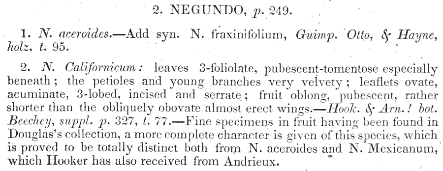 Протолог Negundo californicum Torr. & A. Gray (A Flora of North America (Torr. & A. Gray) 1(2): 250. 1838 [Oct 1838]):