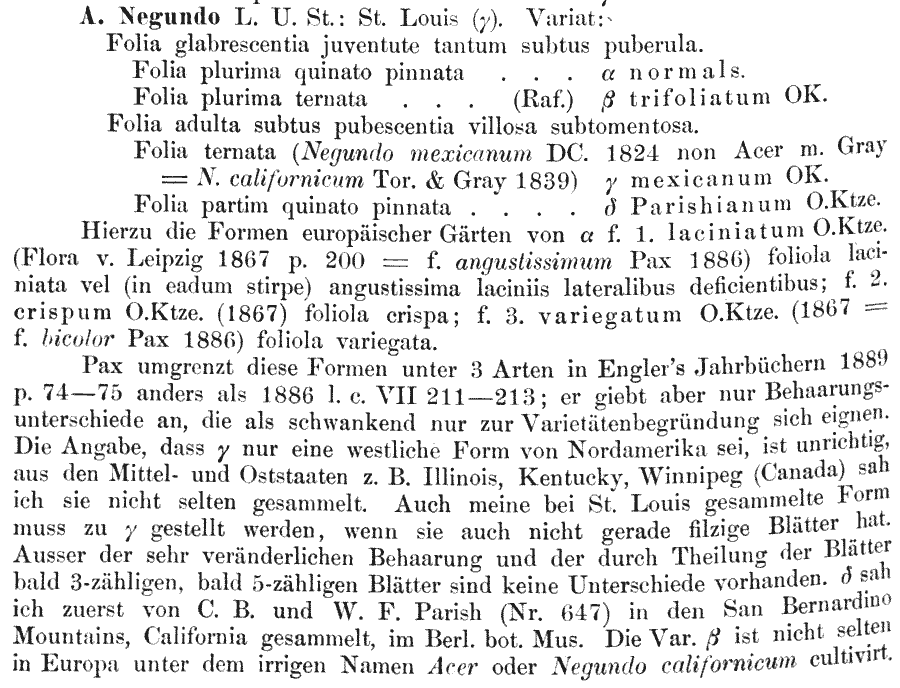 | Андрей Ковальчук | Протолог Acer negundo var. parishianum Kuntze (Revisio Generum Plantarum 1: 146. 1891 [5 Nov 1891]):