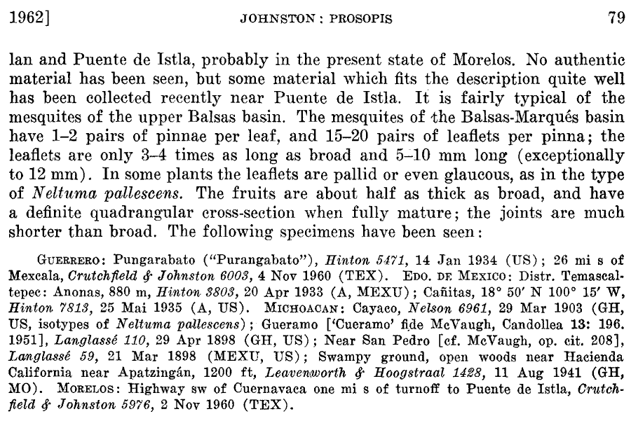 Протолог Neltuma michoacana Britton & Rose (North American Flora 23(3): 187. 1928):