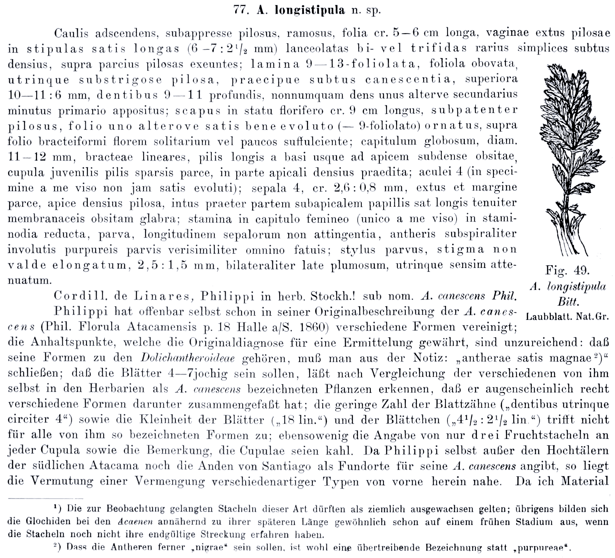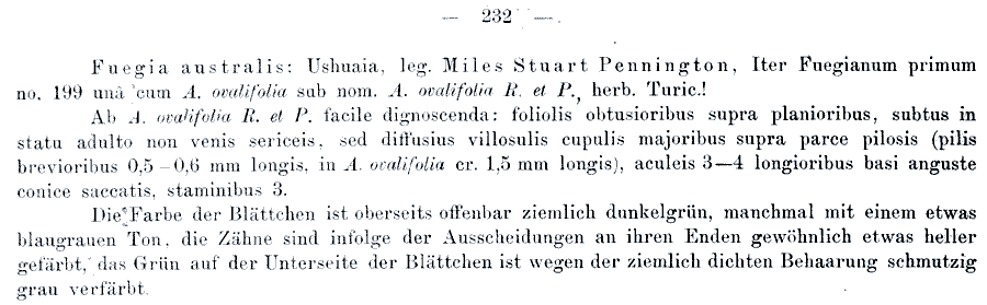 | Андрей Ковальчук | Протолог Acaena longistipula Bitter (Bibliotheca Botanica 17, Heft 74: 204, fig. 49. 1910) и Acaena colchaguensis Bitter (Bibliotheca Botanica 17, Heft 74: 205, fig. 50. 1910):
