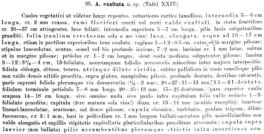 | Андрей Ковальчук | Протолог Acaena exaltata Bitter (Bibliotheca Botanica 17, Heft 74: 229, Taf. XXIV. 1910), Acaena plioglochin Bitter (Bibliotheca Botanica 17, Heft 74: 230. 1910) и Acaena subtusvillosula Bitter (Bibliotheca Botanica 17, Heft 74: 231, Fig. 59. 1910):