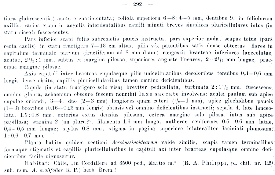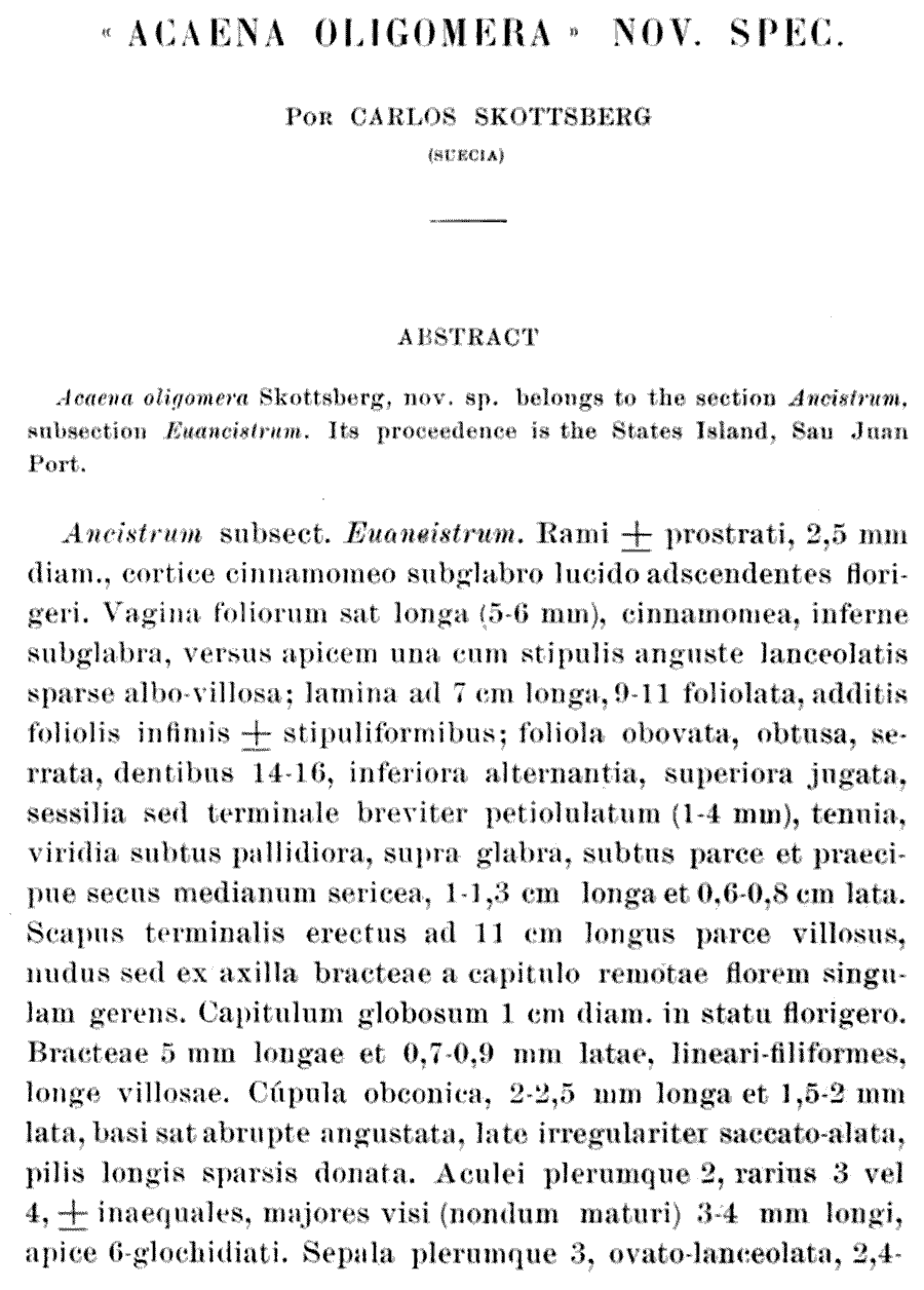 | Андрей Ковальчук | Протолог Acaena oligoglochin Bitter (Bibliotheca Botanica 17, Heft 74: 227. 1910):