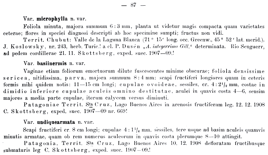 | Андрей Ковальчук | Протолог Acaena integerrima var. evectifolia Bitter и Acaena integerrima var. subpilosicupula Bitter (Bibliotheca Botanica 17, Heft 74: 85. 1910):
