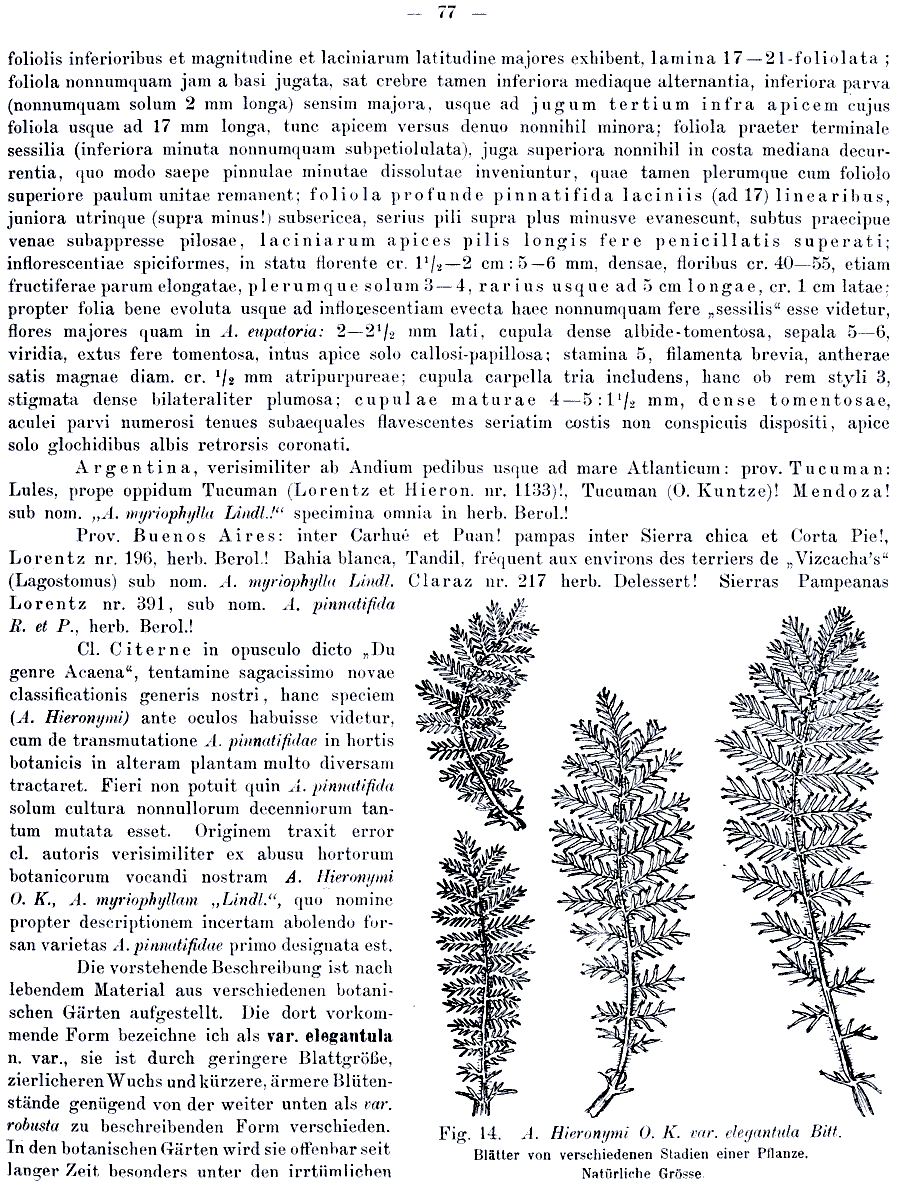 | Андрей Ковальчук | Протолог Acaena hieronymi var. elegantula Bitter (Bibliotheca Botanica 17, Heft 74: 77. 1910) и Acaena hieronymi var. robusta Bitter (Bibliotheca Botanica 17, Heft 74: 78. 1910):