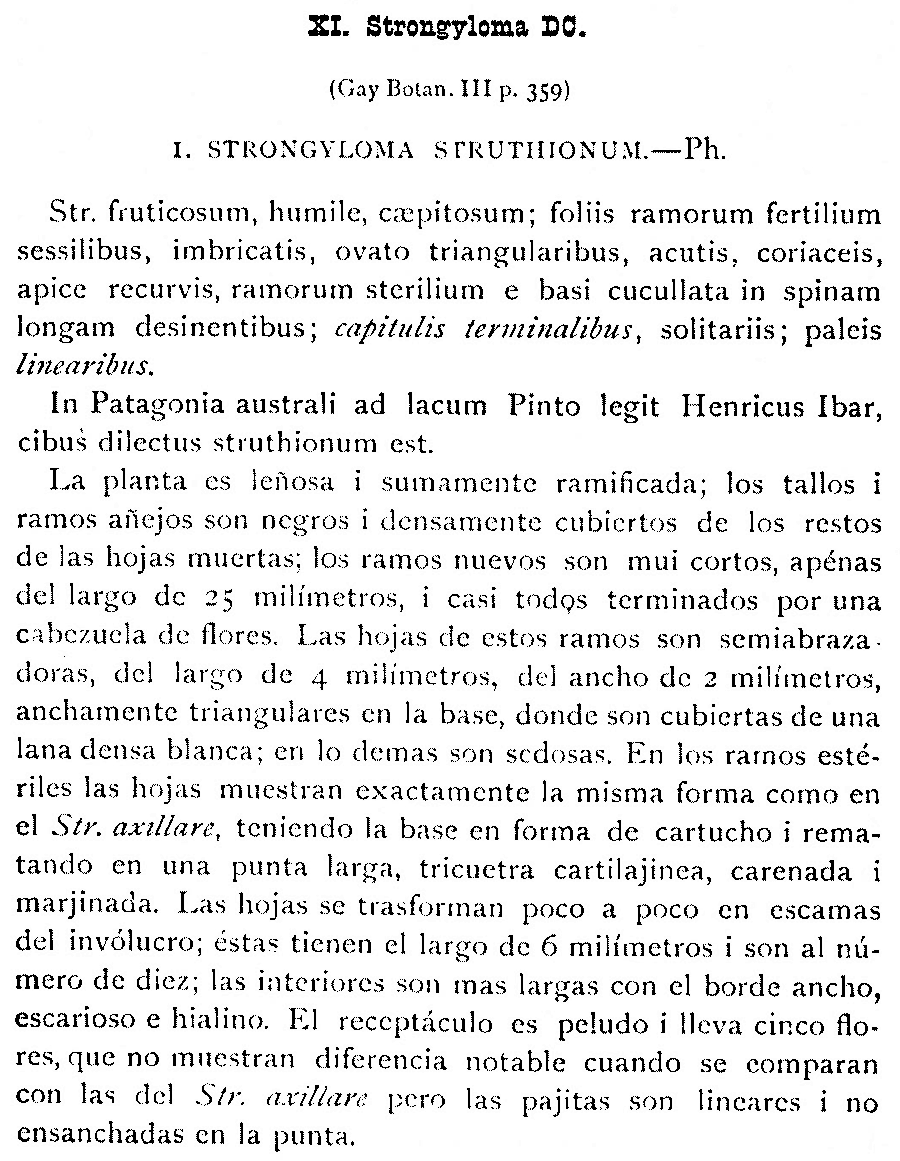 | Андрей Ковальчук | Протолог Strongyloma struthionum Phil. (Anales de la Universidad de Chile 87: 88. 1894):