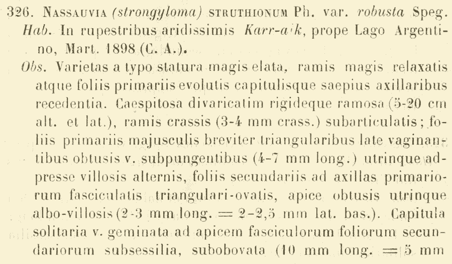 | Андрей Ковальчук | Протолог Nassauvia struthionum var. robusta Speg. (Anales de la Sociedad Científica Argentina 53: 68. 1902):
