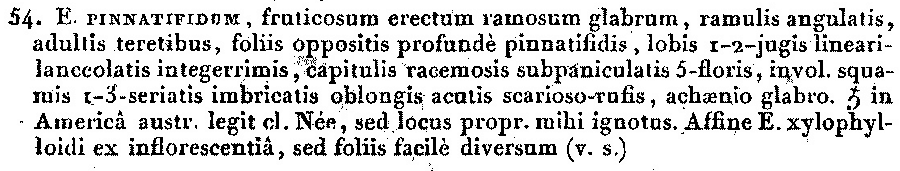 Протолог Eupatorium pinnatifidum DC., nom. illeg. (Prodromus Systematis Naturalis Regni Vegetabilis 5: 149. 1836 [1-10 Oct 1836]), non Eupatorium pinnatifidum Elliott (1823):
