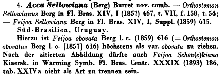 Протолог Feijoa schenkiana Kiaersk. (Enumeratio Myrtacearum Brasiliensium 186, pl. 24, fig. a. 1893):