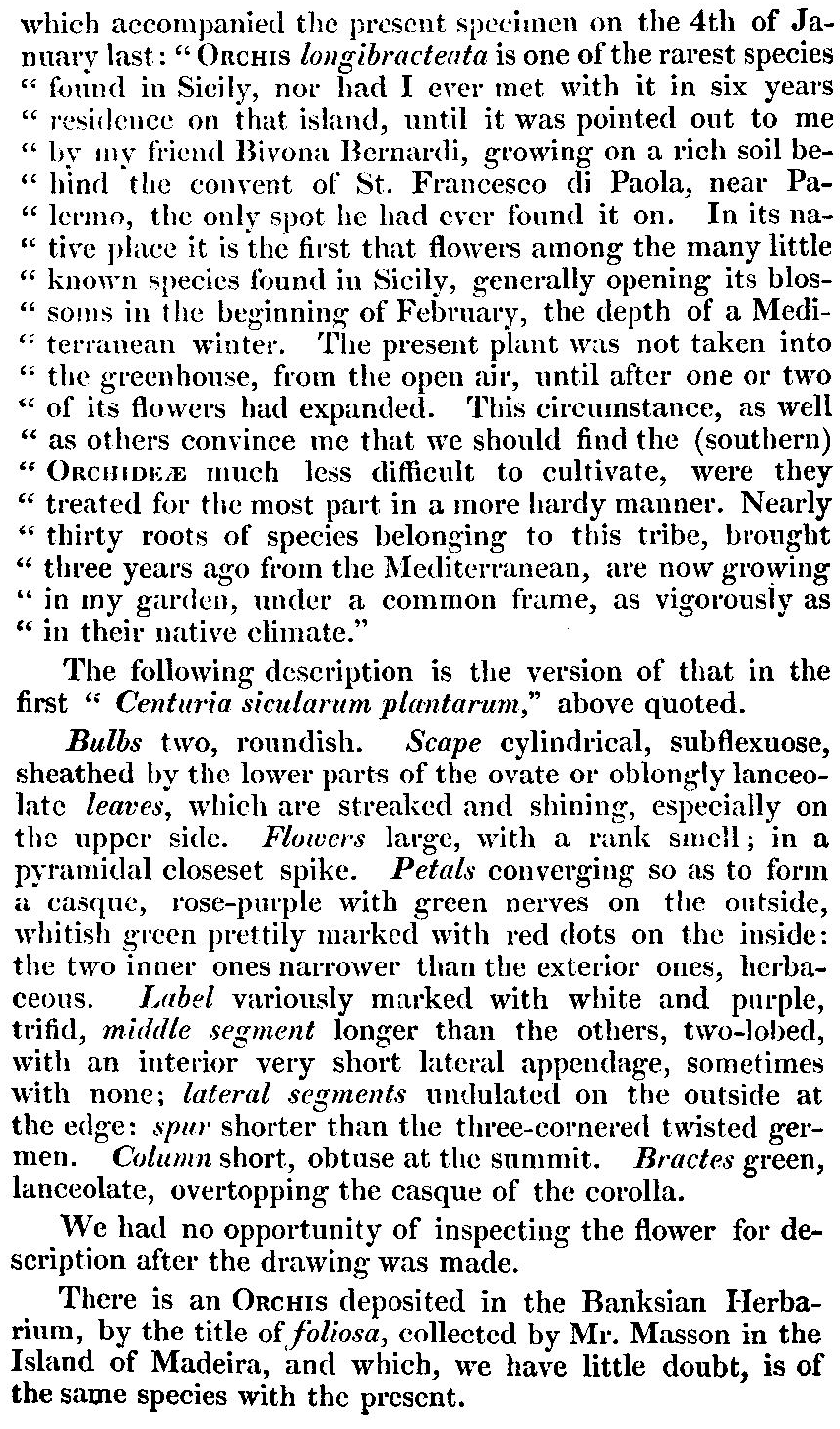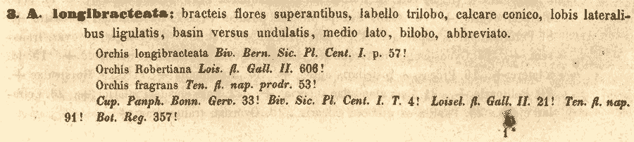 Протолог Orchis longibracteata Biv., nom. illeg. (Sicularum plantarum centuria prima 1: 57, tab. 4. 1806), non. O. longebracteata F.W. Schmidt (1791):